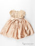 Нарядное платье выполнено из смесовых тканей с батистовой подкладкой. Округлый вырез горловины, застежка на молнию на спине, короткий рукав-фонарик, атласный поясок продет в шлевки, пышный отрезной атласный низ изделия дополнен шелковистой подкладкой с сетчатой оборкой.