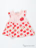 Забавное трикотажное платьице с округлым вырезом горловины и с коротким рукавом-крылышком. Застежка на пуговицы до середины изделия, на полочке съемная брошь в виде яблока.