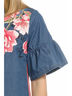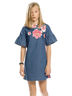 Платье для девочек из тонкой джинсы, модного А-образного силуэта, с укороченным рукавом с притачной рюшей.