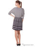 Детали: круглый вырез; широкий рукав 3/4; пояс на резинке; юбка декорирована контрастными полосами