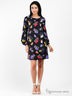 Оригинальное платье свободного силуэта. Округлый вырез горловины. Сзади застежка на пуговицу. Длинные рукава с манжетами на пуговице. Модный узор.