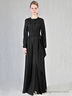 Детали: округлый вырез горловины, застежка на пуговицы, длинный рукав присборен на манжету, юбка в пол