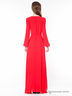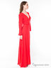 Детали: V-образный вырез горловины с запахом, длинный рукав, линия талии подчеркнута шнурком