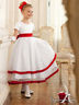 Стильное праздничное платье из гладкой ткани. Округлый вырез горловины. Отрезной лиф расшит крупными бусинами. Короткие прямые рукава. Отрезной пояс из яркой ткани. Длинная пышная юбка декорирована вставками контрактной ткани.