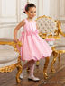 Модное платье из гладкой ткани. Вырез горловины - каре. Широкие бретели. Застежка на спине на молнию. Лиф дополнен оригинальной драпировкой и крупными розами из ткани. На спинке крупный бант из широкой ленты. Юбка-баллон средней длины.
