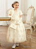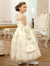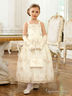 Потрясающее платье из атласной ткани. Вырез горловины - каре. Широкие бретели. Застежка на спине на молнию. Спинка декорирована широким атласным бантом. Длинная пышная юбка. Платье украшено великолепным кружевом.