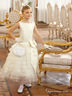Стильное праздничное платье. Лиф классического кроя и пышная юбка с воланами, обработанными по краю жёсткой капроновой нитью. Широкий атласный пояс украшен роскошным бантом, скрепленным оригинальным браслетом из страз.