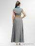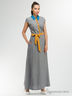 Великолепное платье, выполненное из комфортного материала. Платье в пол с поясом и воротничком контрастного цвета. Модель имеет короткие рукава. Отличный вариант для женского гардероба.