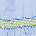 Детали: округлый вырез горловины, рукав "фонарик", застежка на спинке на пуговицы, складки, полочка украшена вышивкой