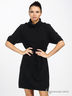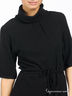 Детали: воротник хомут, короткие цельнокроеные рукава, талия подчеркнута тонким поясом в тон