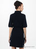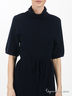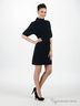 Детали: воротник хомут, короткие цельнокроеные рукава, талия подчеркнута тонким поясом в тон