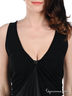 Детали: глубокое декольте, широкие бретели, открытые плечи, спереди шелковистый шлейф