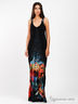 Детали: V-образный вырез горловины, широкие бретели декорированы вышивкой крестом, оригинальная треугольная вставка с ярким принтом по центру платья.