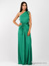 Детали: ассиметричный вырез горловины, плечо и талия на кулиске с завязками, бока модели с атласными вставками, расклешенная юбка.
