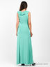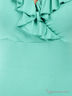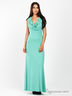 Детали: V-образный вырез горловины с запахом декорирован воланом, завышенная линия талии, свободная длинная юбка.