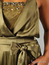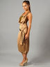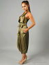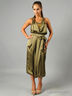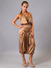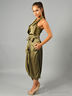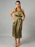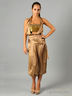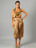 Детали: вырез с запахом, два врезных кармана, длина юбки чуть выше щиколотки, топ выполнен из отделочной ткани украшен стразами, юбка присборена, шлевки под пояс, пояс в комплекте, широкая юбка собранна в подоле на ленту.