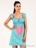 Прекрасное уютное платье из комфортного хлопкового материала. Вырез каре горловины декорирован тесьмой и бархатным бантиком, широкие бретели, отрезной лиф, крупный печатный принт на юбке в форме сердца.