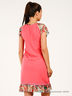 Легкое уютное платье из комфортного хлопкового материала. Округлый вырез горловины с капелькой и завязками для бантика, короткие рукава реглан и оборка снизу из вискозного материала со стильным принтом. Аппликация из страз на полочке. Для тех, кто ценит красоту и комфорт!