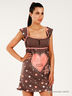 Прекрасное уютное платье из комфортного хлопкового материала. Вырез каре горловины декорирован тесьмой и бархатным бантиком, широкие бретели, отрезной лиф, крупный печатный принт на юбке в форме сердца.