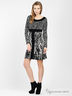 Повседневное платье приталенного силуэта с округлым вырезом горловины и длинным рукавом. Отрезной пояс. Изделие украшено рисунками. Контрастные вставки. Будьте в центре внимания каждый день.