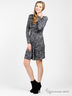 Повседневное платье приталенного силуэта с V-образным вырезом горловины и длинным рукавом. Изделие украшено рисунками. Оригинальная складка спереди. Будьте в центре внимания каждый день.
