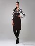 Приталенное платье с эффектом двойки, рукавом 7/8 и оригинальным принтом сверху. Дополнено черным ремешком. Отлично подходит для повседневной жизни