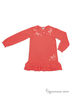 Платье из эластичного трикотажа для модной девочки. Принт по контуру горловины и внизу изделия. Горловина с трикотажной окантовкой. Низ изделия декорирован оборками в два ряда. Низ рукава собран на резинку.