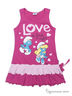 Яркое трикотажное платье для дома с изображением героев из любимого мультфильма "смурфики" . Платье из эластичного трикотажа комбинированной расцветки с узкими бретелями-маечка. Горловина и пройма рукавов обработаны трикотажной бейкой, талия этой модели занижена. Юбка с двойной оборкой, края которой декоративной окантовки. Платье украшено объемным бантом.