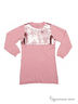 Стильное вязаное платье с длинным рукавом и округлым вырезом горловины. Горловина, край рукава и низ изделия - трикотажная резинка. Кокетка - отделка пайетками.