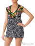 Новая модель! Эффектный пляжный сарафан свободного кроя с глубоким декольте, оформленным большим воланом. Грациозные линии силуэта обозначены эластичной резинкой по линии бёдер. Туника выполнена в технике детального расположения принта из деликатной микрофибры в сложносочинённом рисунке по мотивам 'Неаполитанского барокко' и цветного горошка 'Монпансье'.