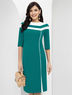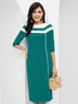 Четкость линий, миди-длина. Красивый бирюзовый оттенок “играет” с белыми вставками. Деловая леди по достоинству оценит это элегантное платье, подчеркивающее фигуру и индивидуальность.