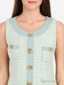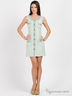 Детали: круглый вырез, без рукавов, сбоку застегивается на молнию, спереди 6 накладных карманов, украшено пуговицами