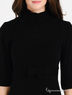 Мягкое повседневное платье из шерстяного вязаного материала слегка расклешенного силуэта. Воротник-стойка, короткие рукава, талия украшена нашивкой и декоративным бантом. Прекрасно согреет в холодную погоду!