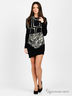 Стильное платье из тонкого трикотажа с подкладкой. Цельнокроеный ворот-хомут, длинный рукав, ассиметричный край низа изделия, на полочке вставки с принтом и драпировка. Будьте в центре внимания каждый день.