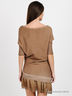 Детали: круглый вырез, короткие рукава с широкими манжетами, низ украшен многослойными шелковистыми воланами