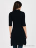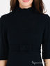Мягкое повседневное платье из шерстяного вязаного материала слегка расклешенного силуэта. Воротник-стойка, короткие рукава, талия украшена нашивкой и декоративным бантом. Прекрасно согреет в холодную погоду!