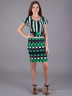 Женственное летнее платье модного дизайна. Модель с короткими рукавами выполнена из ткани с оригинальным контрастным принтом. Изделие приталенного силуэта. Создать обворожительный образ Вы сможете с помощью такой важной детали гардероба, как это платье. Широкий ремень-резинка в комплекте.