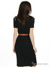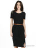 Детали: круглый вырез, короткие рукава, отрезной лиф, сзади застегивается на молнию, талия со шлевками, сбоку небольшой разрез, плечики украшены декоративными элементами и цепью