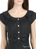 Детали: круглый вырез с отложным воротником, короткие рукава, спереди застегивается на пуговицы, сзади на молнию, спереди декоративный бант