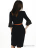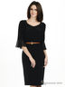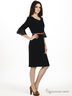 Детали: круглый вырез, короткие рукава с воланами, сзади застегивается на молнию, талия со шлевками, снизу шлица