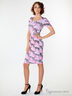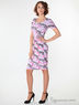 Детали: округлый вырез, короткие рукава, талия украшена поясом, яркий принт
