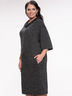 Платье прямого силуэта, с рельефами по переду и спинки, без бокового шва. В рельефных швах переда карманы. Плечо спущенное, рукав втачной, 3/4, с фигурной проймой. Воротник - хомутик. На фото модель 52 размера, рост 174 см.