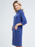 Платье прямого силуэта, отрезное по линии бедер.Воротник стойка, рукав втачной, 3/4. Нижняя часть переда с двумя накладными карманами с цельнокроеным клапаном. Спинка с застежкой на потайную молнию в среднем шве.