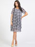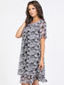 Платье трапециевидного силуэта, с кокеткой по переду и спинке. Горловина круглая, рукав втачной, короткий. Нижняя часть переда и спинки с застроченными складками, на подкладке. По низу подкладки - притачная оборка из основной ткани.