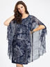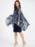 Платье из двух тканей.Пелерина переда и спинки расклешенная из шифона, нижнее платье прилегающего силуэта из масла. Горловина круглая.