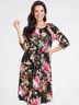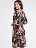 Платье отрезное по линии талии. Рукав реглан,3/4, по низу на эластичной тесьме. Горловина переда и спинки собрана в сборку. Юбка полусолнце. По шву талии эластичная тесьма.