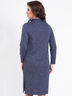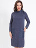 Платье прямого силуэта, с разрезами в боковых швах. Рукав втачной, длинный. Перед с двумя накладными карманами. Воротник стойка, с кулисой, в кулису продета завязка. Воротник, завязка, накладные карманы выполнены из тонкой плащевой ткани в тон основного сырья.