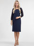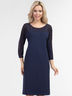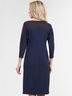 Платье женское полуприлегающего силуэта. Рукав 3/4 цельнокроеный. Верхняя часть переда и спинки с кокеткой из двойной сетки. Горловина круглая.