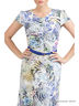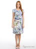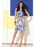 Очаровательное платье приталенного покроя с короткими рукавами. Изделие выполнено из ткани контрастной расцветки и дополнено пояском на талии. Отличный вариант для повседневного гардероба.