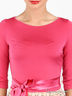 Детали: округлый вырез горловины, рукав 3/4, вытачки, по боковым швам пришиты шлевки, в комплекте атласный пояс